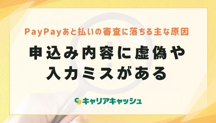 PayPayあと払いの審査の際、申込内容に誤りがあったり、虚偽の申請をした場合も、審査に落ちる原因となります。
